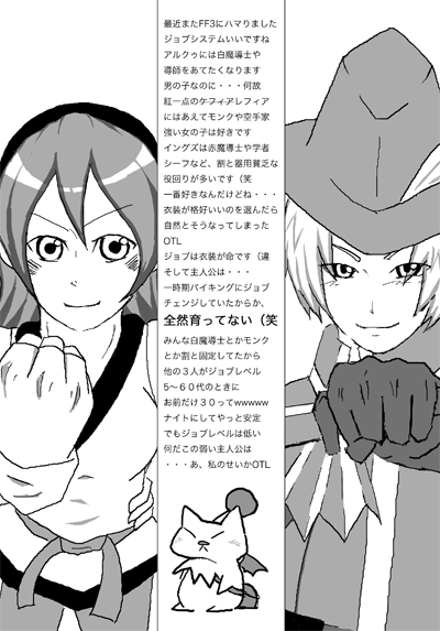 ニコ動からMP3を抽出しようとしてました 「いいのかそんなこと」とかはスルー ポポロクロイスのBGMをFLVで落とそうとする FLVなんちゃらでMP3に変換 さぁ、ipodで聴いてみるぜ!! 流れてくるのはメルトのイントロ(キー下) 不審に思いながらもそのまま聴いていく 『い〜もいも妹子♪い〜もいも妹子♪』 壁に頭ぶつけた 何 故 ギ ャ グ 日 が 入 っ て い る ん だ ! !(汗 多分FLVで落とすときかFLVから変換するときに発生した事故 この前もFFメドレー聴こうと思ったら 奥田民生の大迷惑が入っていた PR 2008.10.19 Sun 15:46:32 トラブル発生2008.10.19 Sun 10:37:32 FF3はねーか、流石に2008.10.17 Fri 23:01:57 今気付いた2008.10.17 Fri 00:31:22 ドククラゲ |