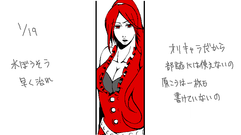 なんというテロ攻撃wwwww ……1週間学校に行けないから寂しいわけではありません。 だって、一日中パソコンできますし。 お絵描き三昧ですし。 2010.01.17 Sun 12:25:09 体調が悪いと短気になるから嫌ね。不健康真っ只中の私に勉強しろと言うんですか、母さん。
